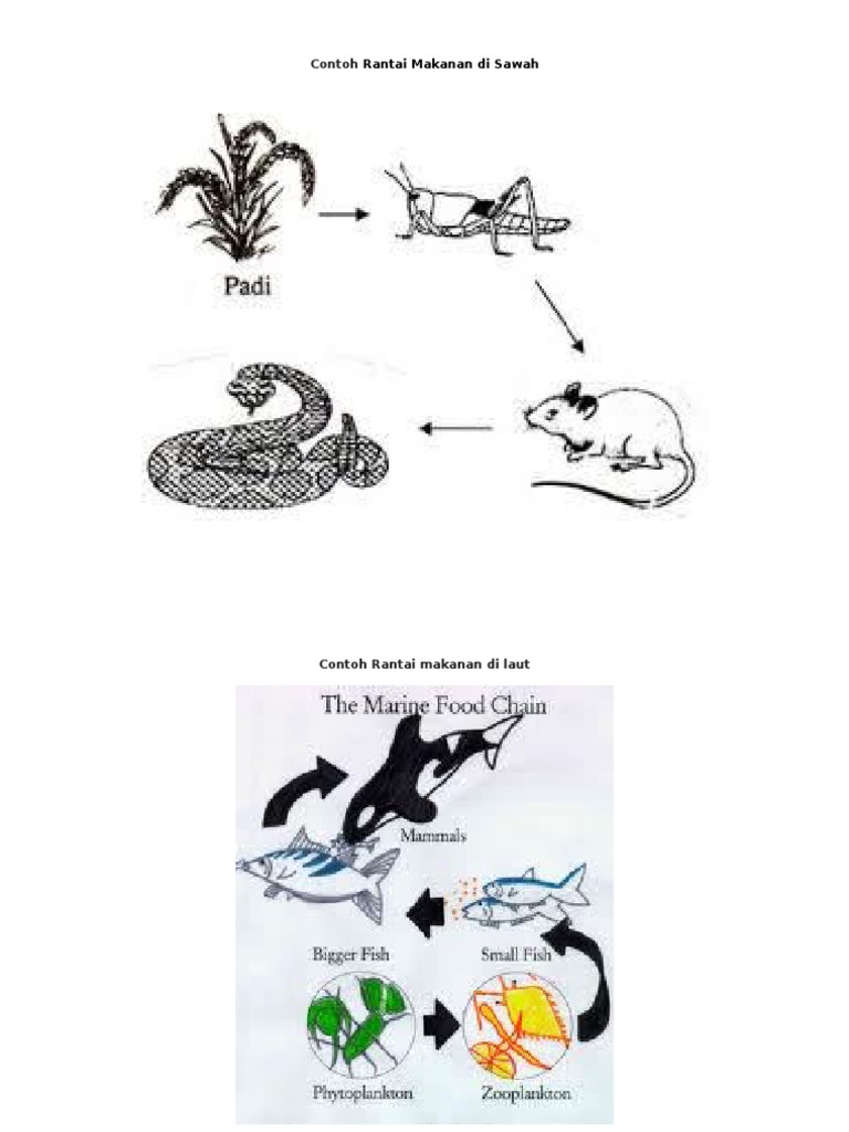 Rantai makanan adalah sebuah proses perpindahan energi oleh organisme dari tingkatan terbawah hingga teratas gambar rantai makanan. Ekosistem sawah adalah salah satu ekosistem buatan manusia untuk memenuhi kebutuhan dasar nutrisi manusia komponen rantai makanan di sawah.